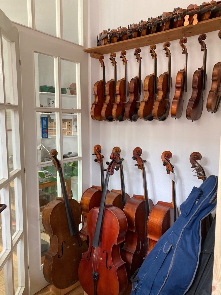 Ich stelle Ihnen professionell eingerichtete hochwertige Instrumenten-Sets (Geigen, Bratschen und Celli) in allen Größen- bestehend aus Instrument, Bogen, Kasten, Kolophonium und Putztuch- zur Verfügung, die von mir regelmäßig gewartet werden. Auch Kontrabässe sind auf Anfrage möglich.